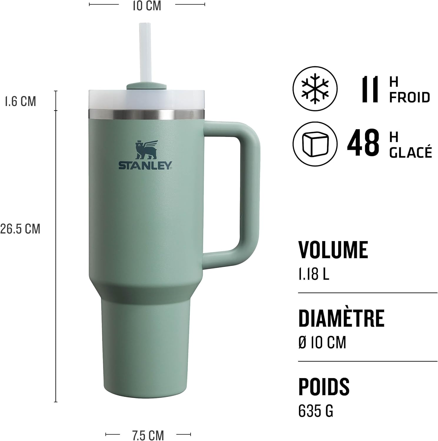 GLACÉ PENDANT 2 JOURS: Restez hydraté plus longtemps, quel que soit l’endroit où vous vous trouvez. La Stanley Cup garde vos boissons glacées pendant 2 jours et froides pendant 10 heures, grâce à l’isolation sous vide à double paroi caractéristique de Stanley. Le Quencher H2.O FlowState Tumbler est une tasse isotherme robuste qui peut contenir 1,2L d’eau.