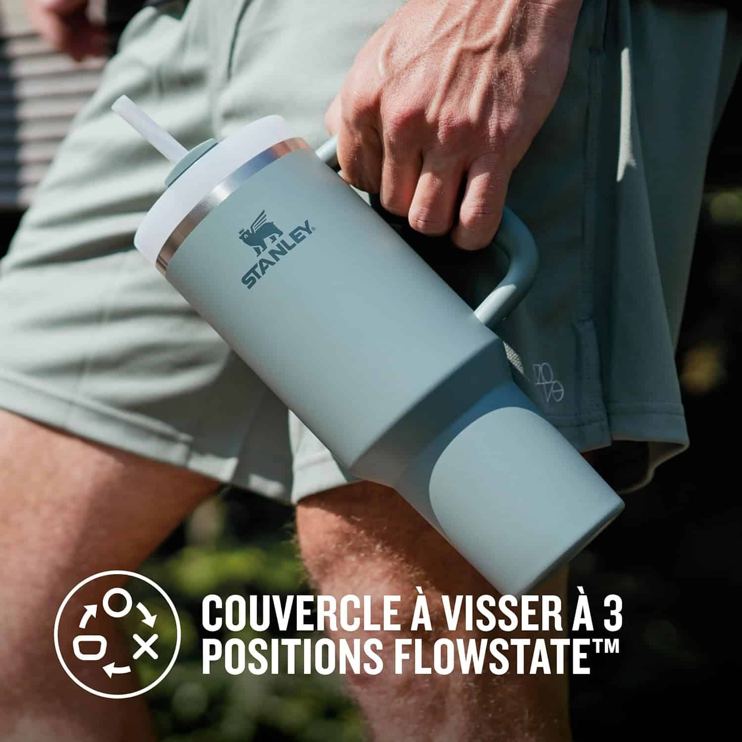 COUVERCLE À VISSER À 3 POSITIONS FLOWSTATE: Vous choisissez la façon dont vous sirotez. Utilisez la paille et sirotez les mains libres pour rester hydraté tout au long de la journée. Vous pouvez également retirer la paille et la faire pivoter pour obtenir une embouchure sans paille. Enfin, il y a un couvercle semi-couvert, qui rendra le Quencher résistant aux éclaboussures pendant le déplacement. Le trou pour boire peut être ouvert.
