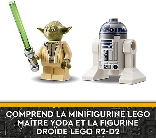 Ce jouet à construire Star Wars comprend également 2 personnages emblématiques : une minifigurine LEGO Star Wars Yoda avec un sabre laser et une figurine de droïde LEGO R2-D2