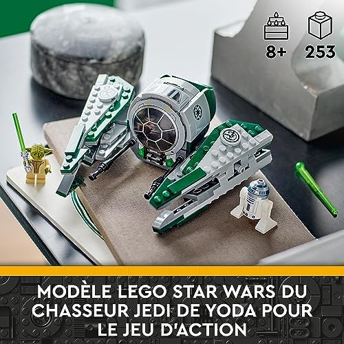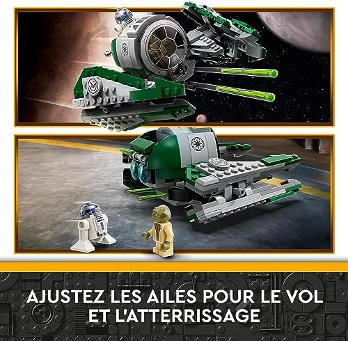 Les enfants explorent une galaxie lointaine, très lointaine avec 2 personnages de Star Wars et cette réplique détaillée en briques LEGO du chasseur Jedi de Yoda (75360). Ce vaisseau est doté d’un cockpit qui s’ouvre pour accueillir la minifigurine LEGO de Maître Yoda, d’un espace pour le droïde LEGO R2-D2, de 2 fusils à ressort et d’ailes ajustables pour le vol et l’atterrissage. Offrez à votre enfant une expérience créative unique avec l’application LEGO Builder, qui propose des instructions et des outils de zoom et de rotation interactifs lui permettant de visualiser ses modèles et de construire en toute confiance.Ce jeu de construction constitue un cadeau fascinant pour les enfants de 8 ans et plus qui aiment Star Wars : The Clone Wars, et fait partie de la vaste gamme de sets de construction LEGO Star Wars conçus pour ravir les fans de Star Wars de tous âges. Le chasseur Jedi de Yoda mesure plus de 7 cm de haut, 13 cm de long et 16 cm de large. Contient 253 pièces