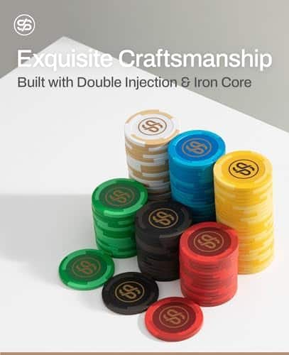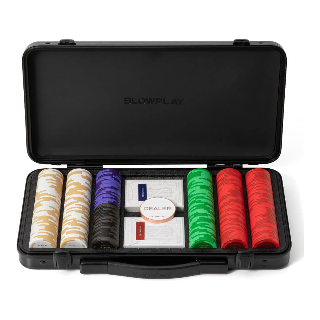 La malette de poker SLOWPLAY contient 300 jetons de 14g de haute qualité. Ces jetons sont fabriqués avec un matériau composite de haute densité pour une sensation authentique de casino.