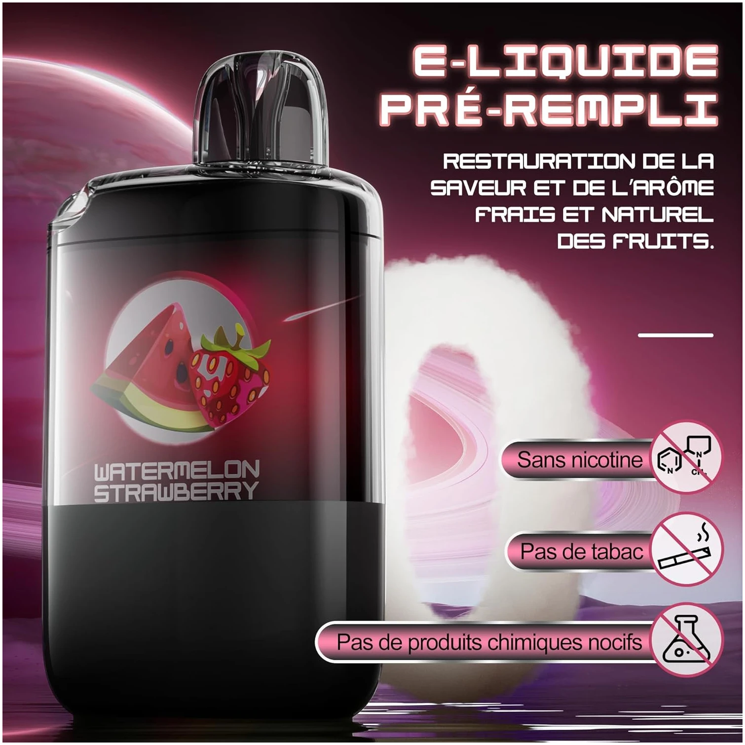 L’e-liquide utilisé dans le X-SPACE Puff est un vrai régal pour les papilles. Fabriqué à partir d’ingrédients naturels, il est exempt de nicotine, de tabac et de produits chimiques nocifs. Cela permet de savourer une expérience de vapotage enrichissante, où la fraîcheur et l’authenticité des arômes fruités sont préservées. Les amateurs de saveurs naturelles apprécieront certainement la subtilité et la douceur de chaque bouffée, qui ne manque pas de ravir les sens.